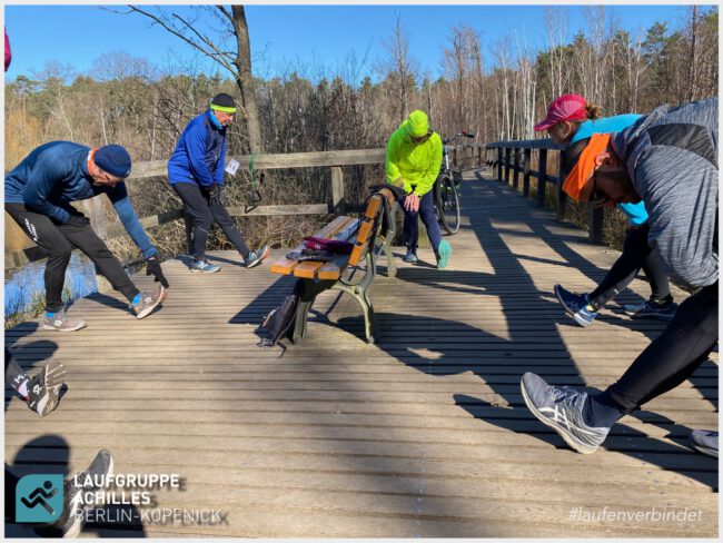 Das Training am Donnerstag besteht aus 3 Teilen: Mobilisation, Laufen, Dehnen.